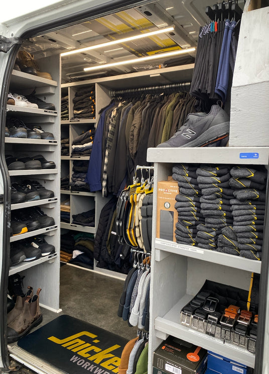 Oplev bekvemmeligheden ved vores kørende showroom, som bringer et stort udvalg af arbejdstøj direkte til dig. Vi har tøj til både håndværkere og kontormedarbejdere og tilbyder alt inden for tryk og broderi.