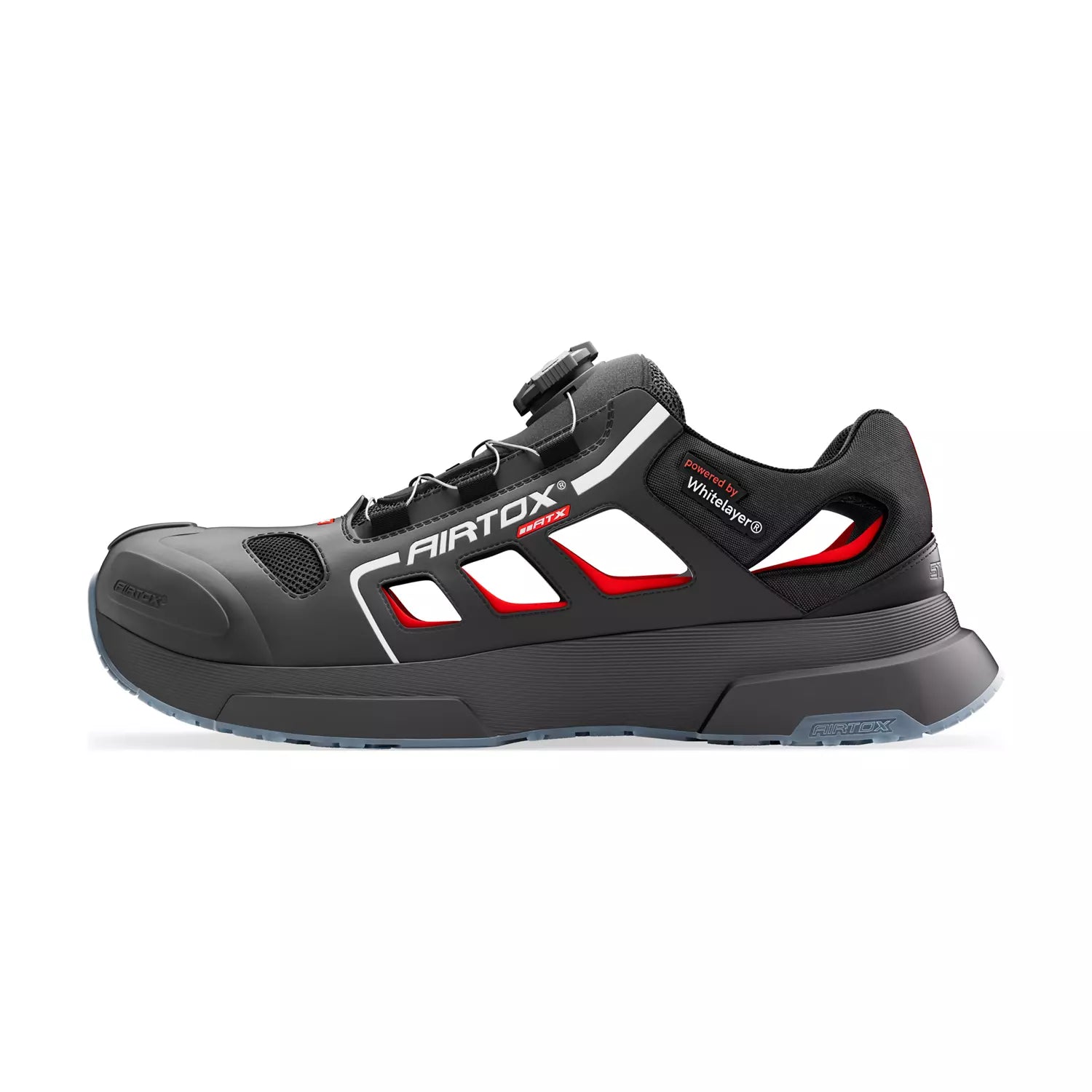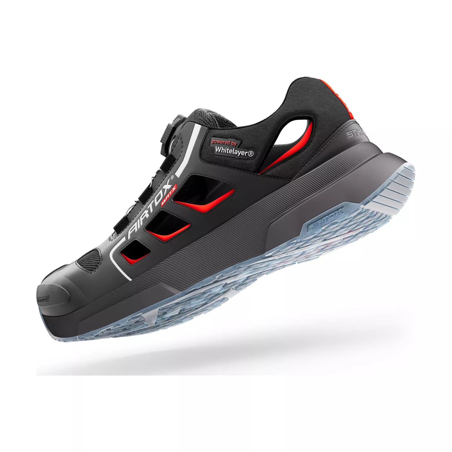 Det smarte AIRTOX PRO smart lacing-system med drejelukning gør det nemt at justere pasformen, mens den skridhæmmende ydersål giver sikkert fodfæste på glatte underlag. Sandalen er antistatisk, olie- og syrefast samt varmebestandig op til 100°C, hvilket gør den ideel til industri, lager og håndværk.