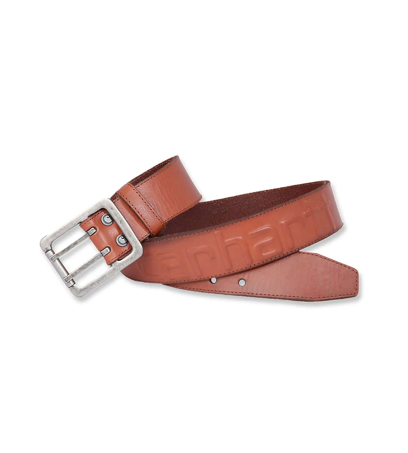 Carhartt-logoet er hævet og indbrændt på midten af bagsiden og tilføjer et subtilt strejf af branding, der vidner om kvaliteten og pålideligheden af dette bælte.