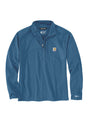 Men's MOCK NECK HALF-ZIP T-SHIRT er en teknisk fleecetrøje designet til aktive dage, hvor varme, bevægelsesfrihed og svedtransport er afgørende. Den høje mock-neck krave og halv lynlås med hagebeskytter giver nem temperaturstyring, mens lang raglanærme og fleecesider sikrer optimal bevægelsesfrihed og komfort. Med Carhartt Force™-teknologi holder stoffet dig tørt og modvirker lugt, og praktiske detaljer som venstre brystlomme med lynlås og tommelfingerhuller gør trøjen funktionel i arbejdet.
